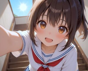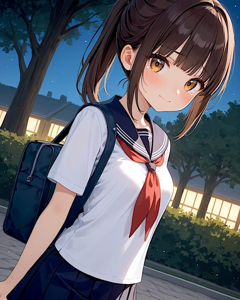 緊張しながらドアを開けると、肌を上気させた……制服姿の垣谷さんがいた。